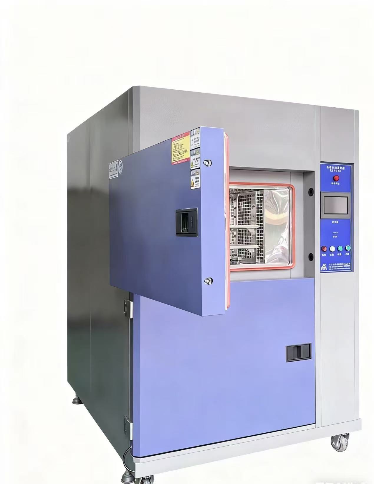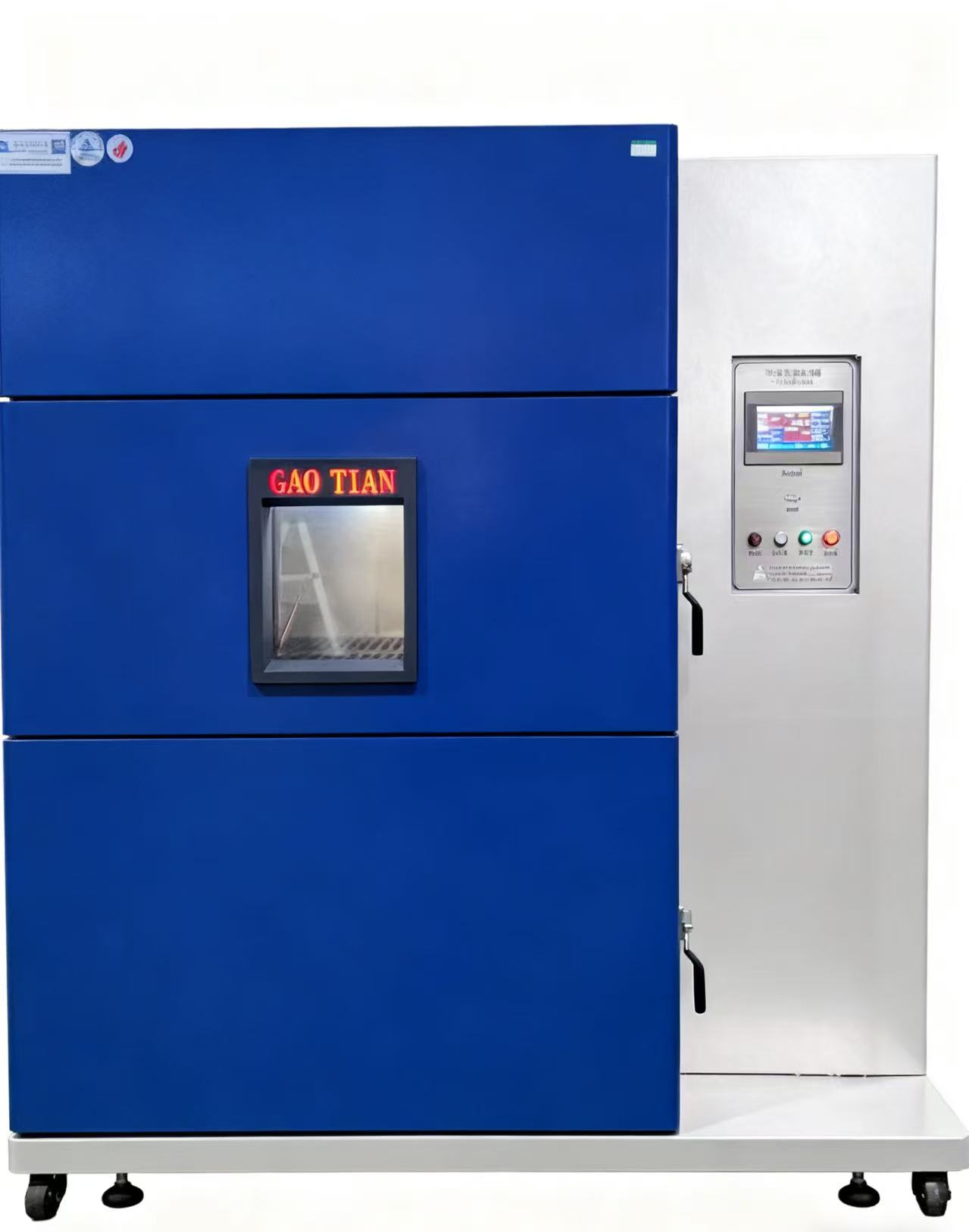 1.三箱設備區分為:高溫區,低溫區,試驗區三部分,測試產品置測試區,沖擊時為高溫或者低溫的溫度沖擊入測試區進行沖擊,